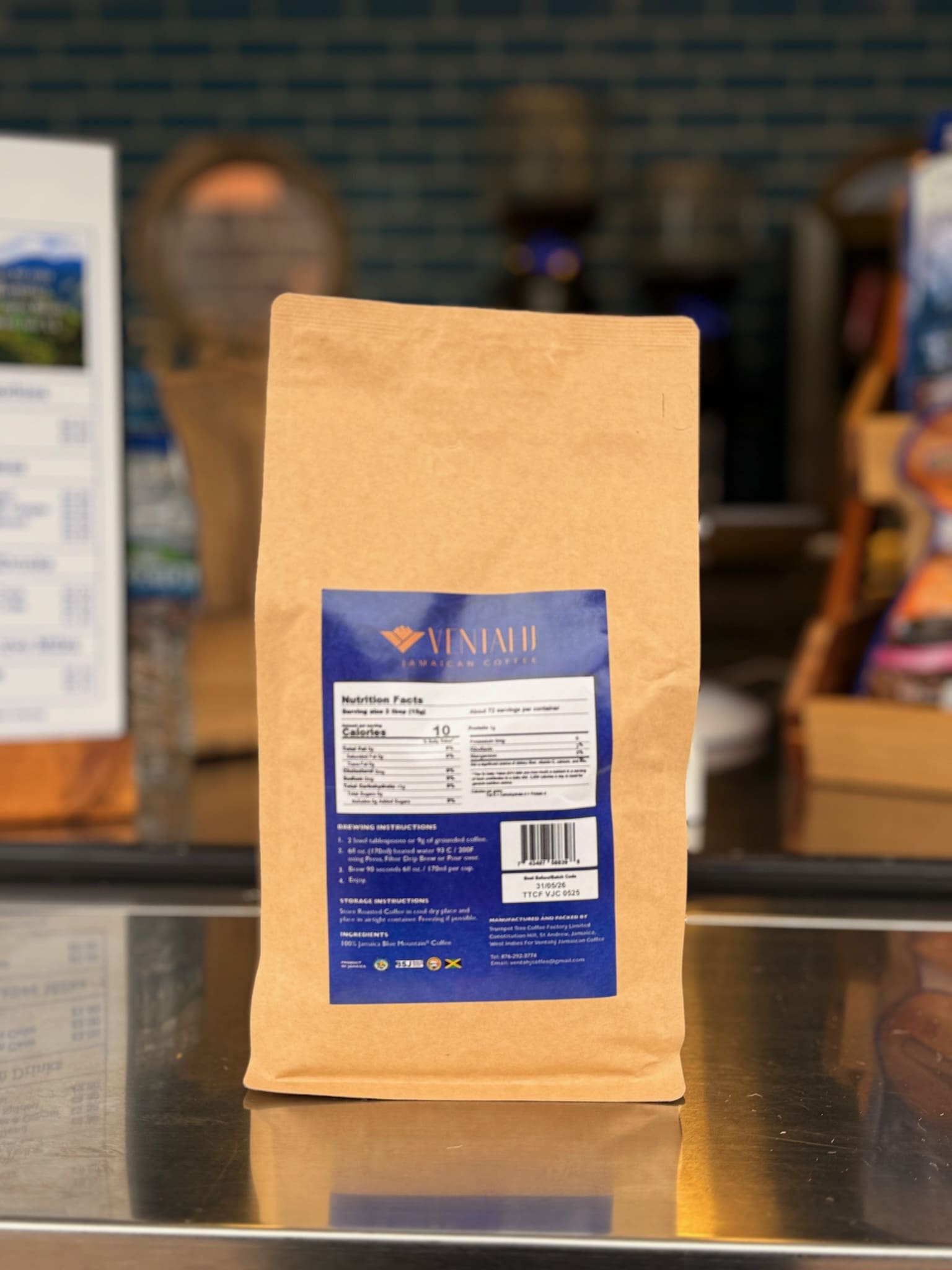 Ventah Jamaican Coffee – 100% Jamaica Blue Mountain® Roasted Beans (16 oz, Medium Roast)